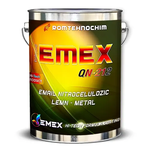 Emailul Nitro-Combinat “Emex QN-212” este un produs profesional, monocomponent, fabricat pe baza de nitroceluloza si rasini alchido-acrilice, pigmenti, aditivi si solventi specifici, utilizat, in conditii industriale, pentru acoperirea decorativa si de protectie a suprafetelor din lemn sau metal.